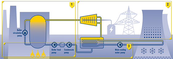 When generating base- and medium-load power, the sealing technology must withstand high permanent loads. Covering peak loads is a matter of being able to control frequent strongly alternating thermal and mechanical loads. In addition, different media - ranging from river water, seawater, or ultrapure water up to abrasive and corrosive media in flue gas desulphurization plants - represent special challenges. EagleBurgmann always offers the appropriate solution here.